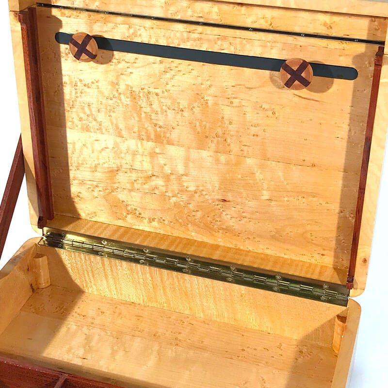 This artist box has become a favorite of Disney Artists and made from Paduak, Birds-eye maple and tiger maple.
