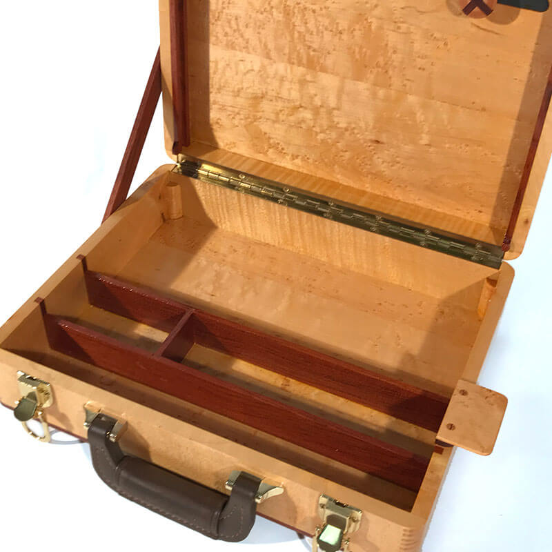 Joinery: This artist box was built using box joinery to create a very strong and beautiful look, commonly found in high-end wooden briefcases and other boxes.