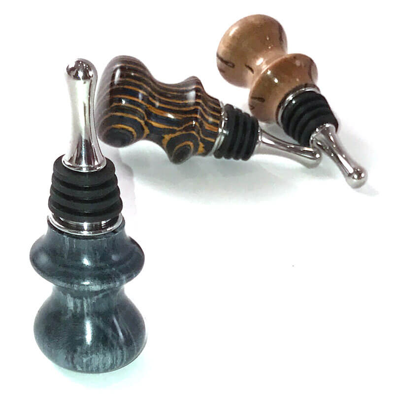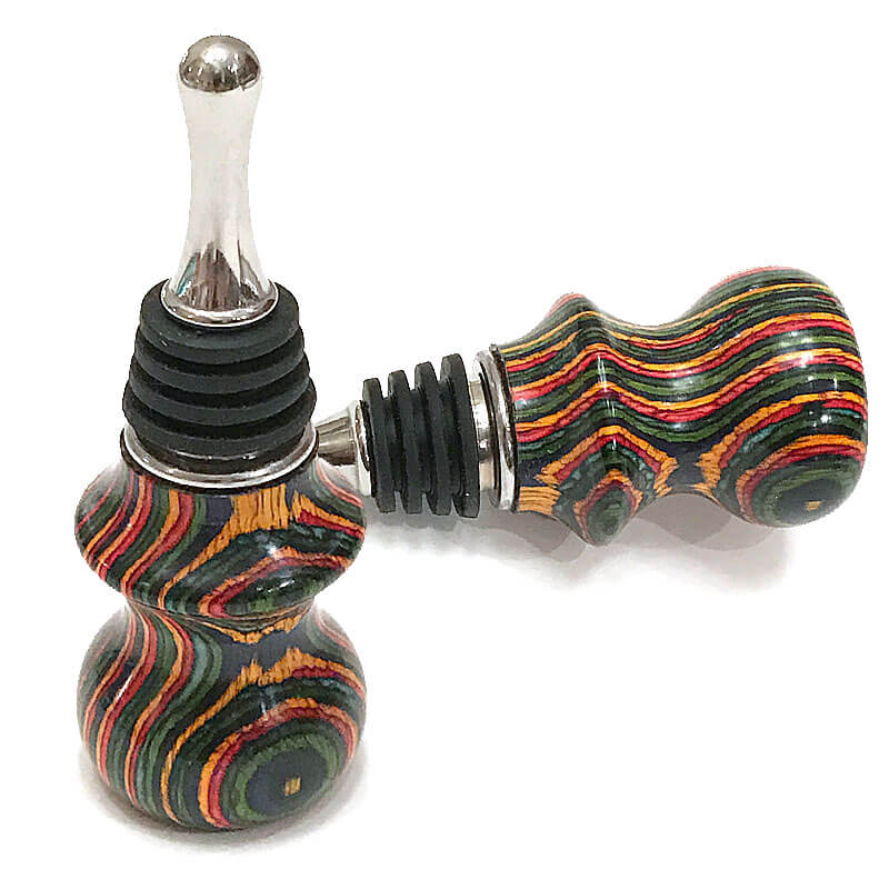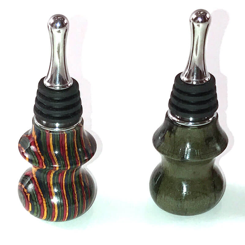 Elegant with a trendy flair, these custom stainless steel wine bottle stoppers with handcrafted handles will surely please your guests as you pour your favorite wines.
